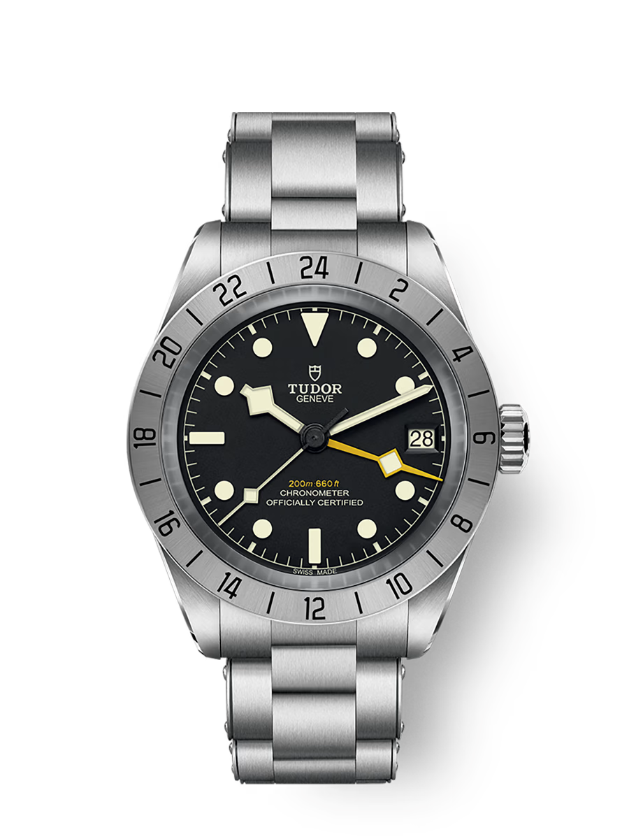 Richiedi InfoTUDOR presenta un modello tecnico dal nome di Black Bay Pro, con diametro di 39 millimetri, lunetta fissa in acciaio e Calibro di Manifattura con funzione GMT integrata. Fedele alla reputazione del Black Bay Pro per la robustezza, questa nuova versione conserva la cassa di 39 mm di diametro, la lunetta fissa in acciaio e il Calibro di Manifattura con funzione GMT integrata. Il nuovo quadrante opalino distintivo è caratterizzato da dettagli estetici che offrono una leggibilità ottimale.