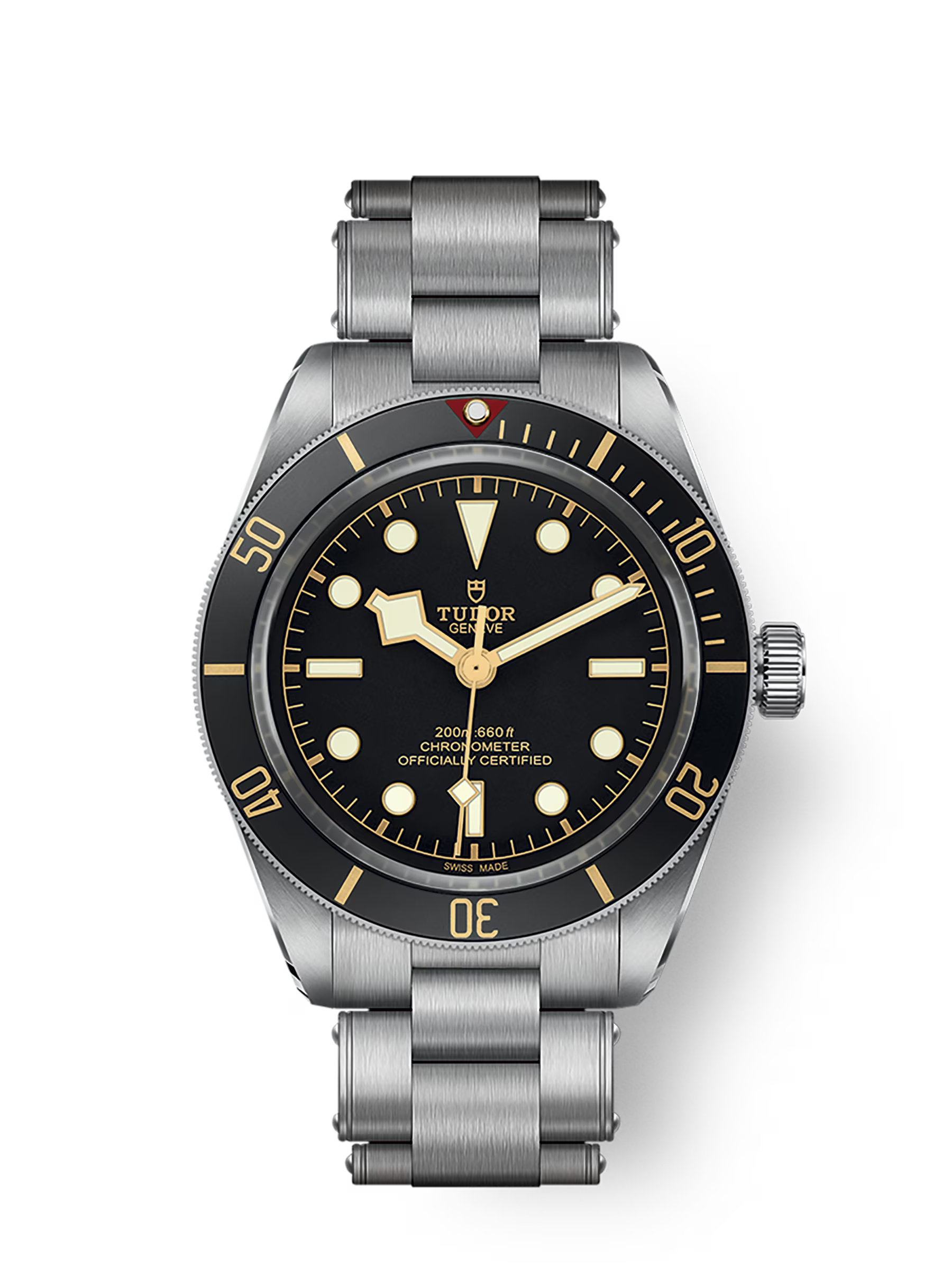 Il nome Black Bay 58 fa riferimento al primo orologio subacqueo TUDOR impermeabile fino a 200 metri, lanciato nel 1958: la referenza 7924, nota come “Big Crown” tra i collezionisti. Il design del Black Bay 58 si ispira all’estetica di questo modello storico. Quest’anno vede due nuovi ingressi nella famiglia Black Bay 58: il Black Bay 58 18K con bracciale in oro massiccio, e il Black Bay 58 GMT, ispirato all’epoca d’oro dei viaggi aerei, a metà Novecento.